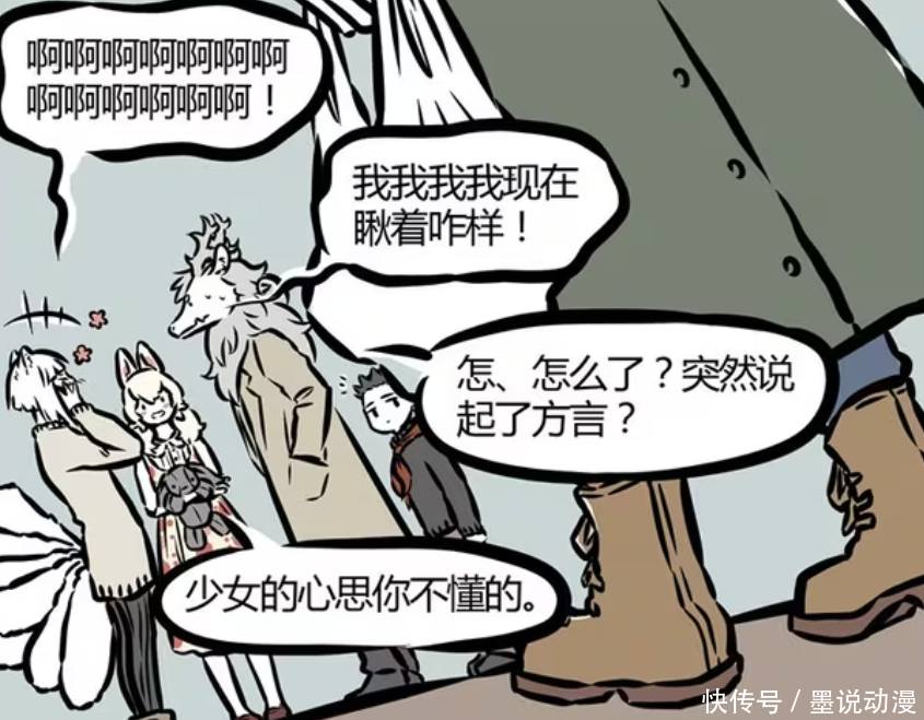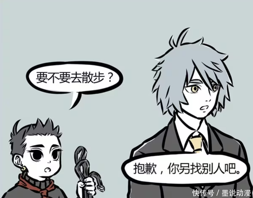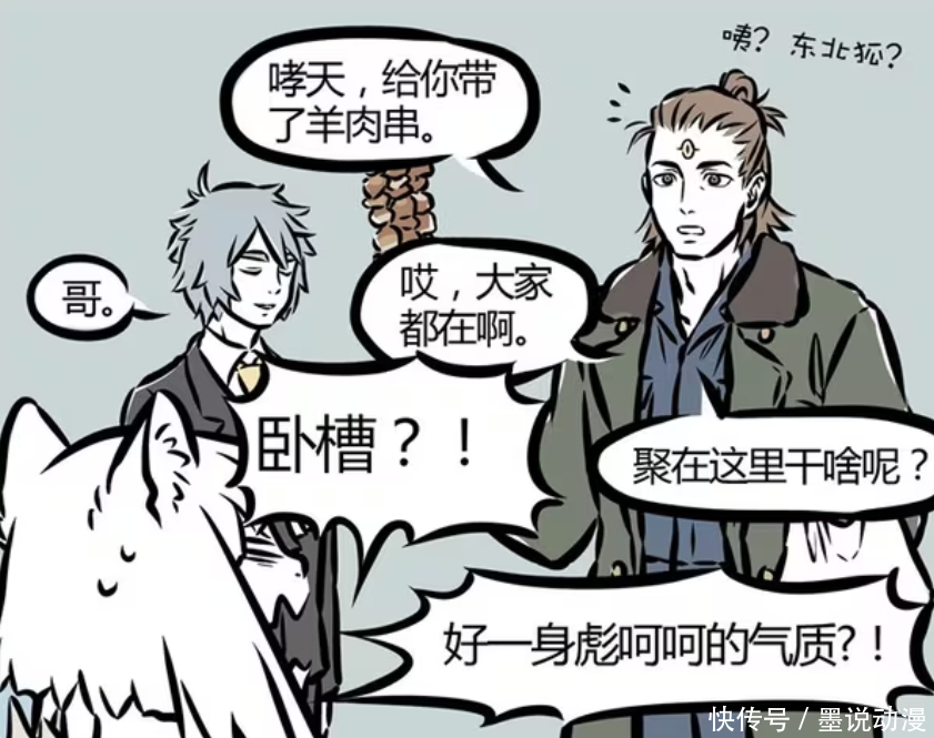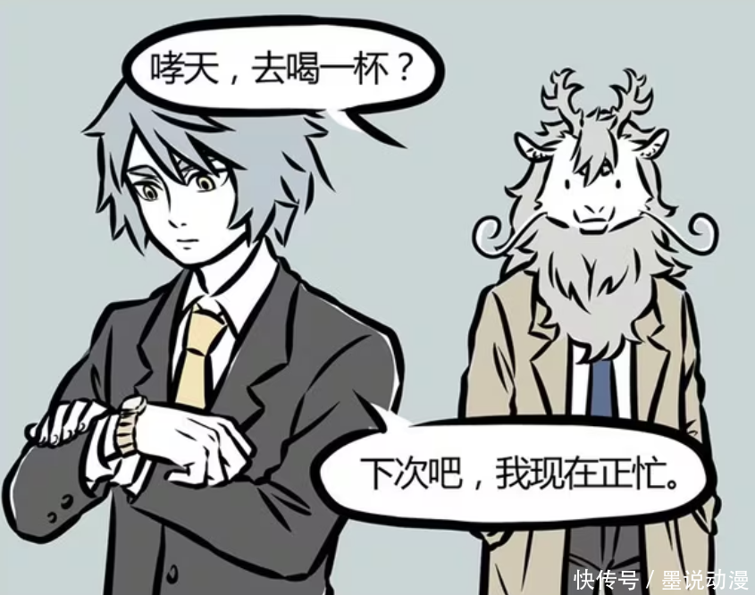 《非人哉》漫画早期,在杨戬登场之时,哮天拒绝了九月、敖烈和哪吒的邀请。不仅如此,哮天还穿上西装,甚至打扮得很精致。九月第一次见到杨戬,倒是有点颠覆了以前的认知。